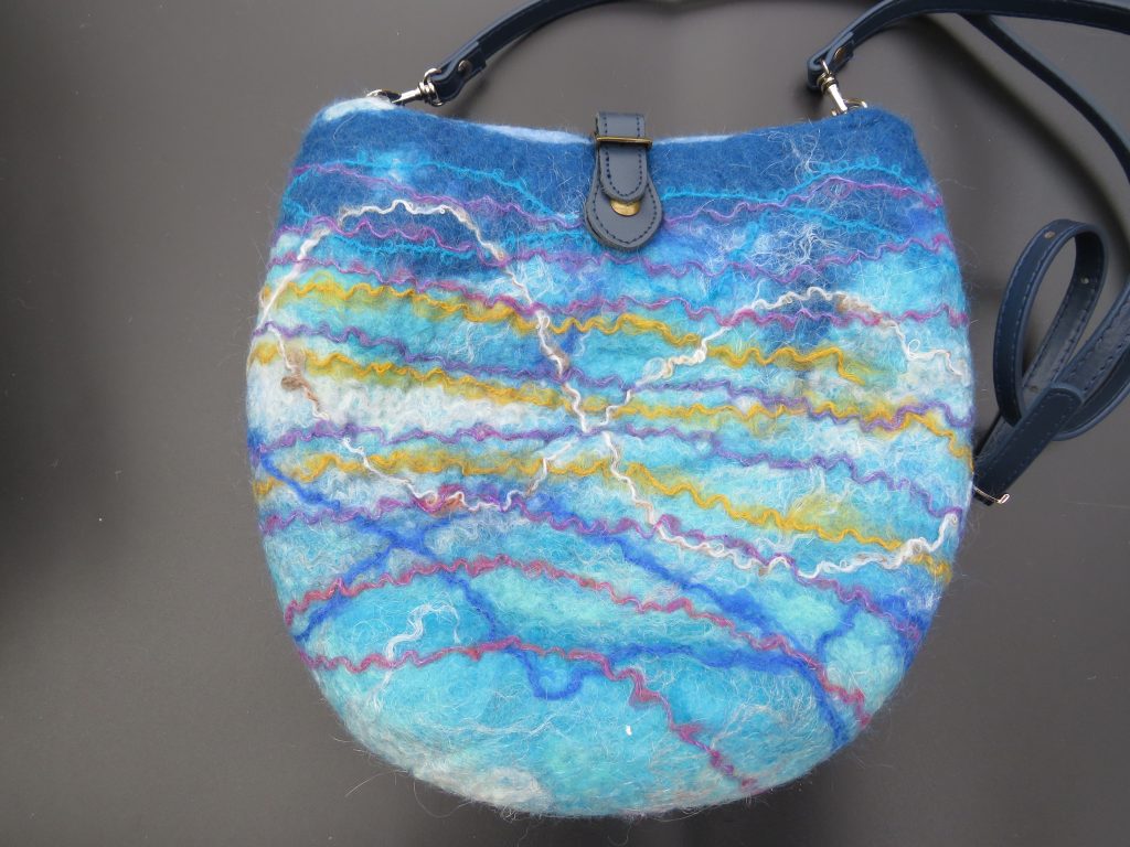 Lovely hand felted bag, featuring a cross body strap, magnetic clasp and internal pocket. Made using Perendale wool, Marino wool and Mohair to achieve a unique blend of colours. Would make a great gift, or a wonderful treat for yourself. £45.00 plus £3.50 UK P & P. Please click HERE for further details and a link to purchase.