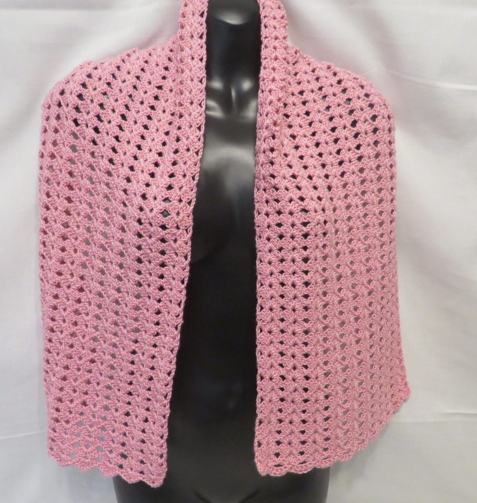 A beautifully soft, handmade crochet summer scarf in a pink colourway. Perfect to adorn a summer outfit. Lovely gift idea. £25.00 plus £3.50 UK P & P. Please click HERE for further details and a link to purchase.