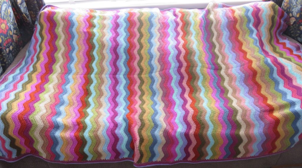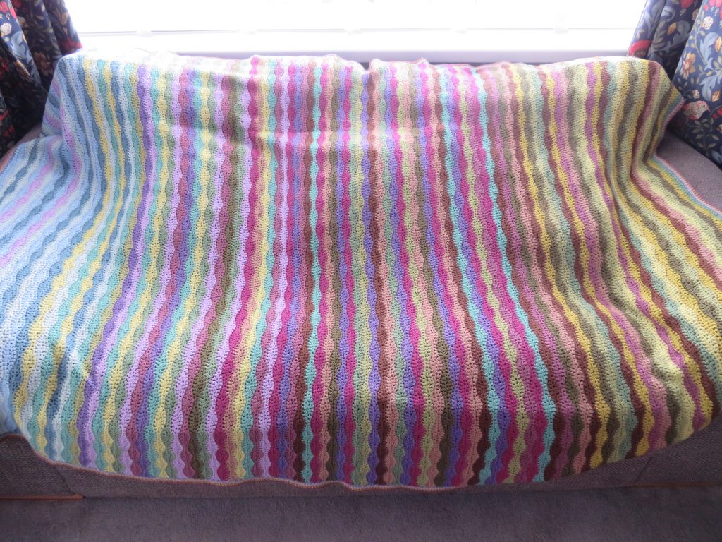 A beautiful and colourful crochet blanket with a neat wave design. Bands of natural colours ranging from blues to greens to purples. £68.00 plus £3.50 UK P & P. Please click HERE for further details and link to purchase.